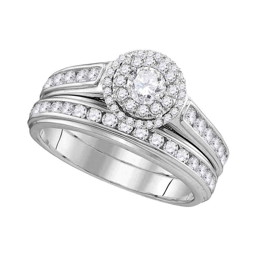10kt White Gold His Hers Round Diamond Solitaire Matching Wedding Set 1-5/8 Cttw