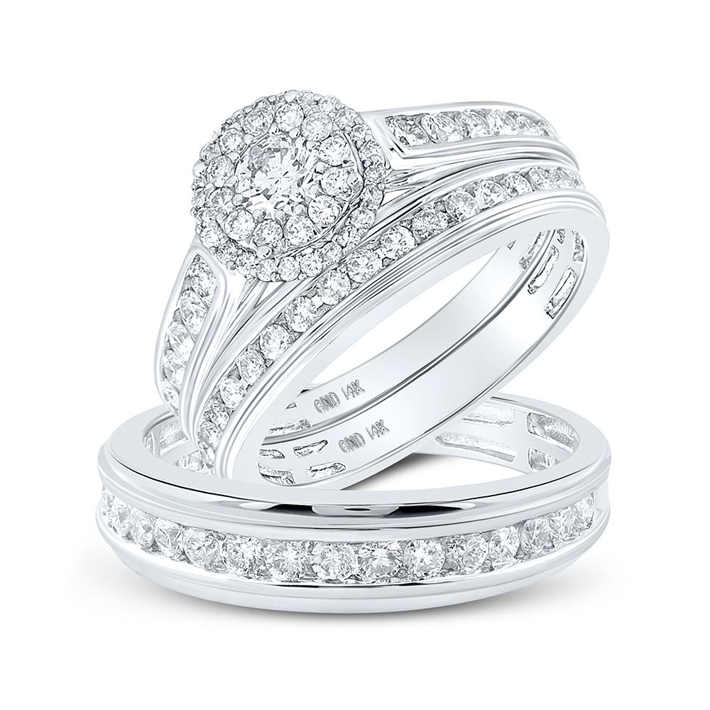 14kt White Gold His Hers Round Diamond Solitaire Matching Wedding Set 1-5/8 Cttw