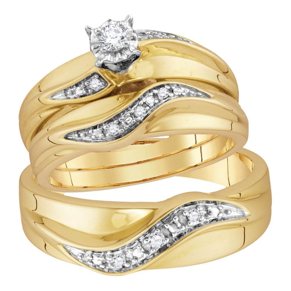 10kt Yellow Gold His Hers Round Diamond Solitaire Matching Wedding Set 1/6 Cttw