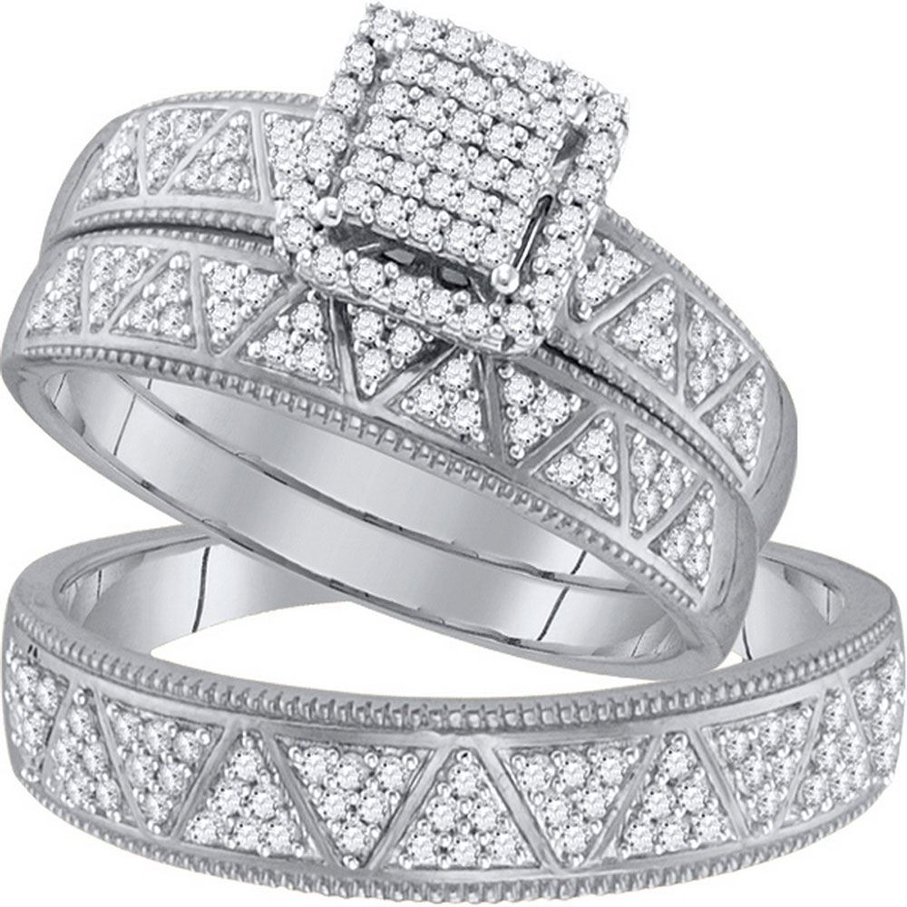 REF-56M4X - SKU: GD110461 ---- His & Hers Diamond Square Cluster Matching Bridal Wedding Ring Band Set 1/2 Cttw 10kt White Gold