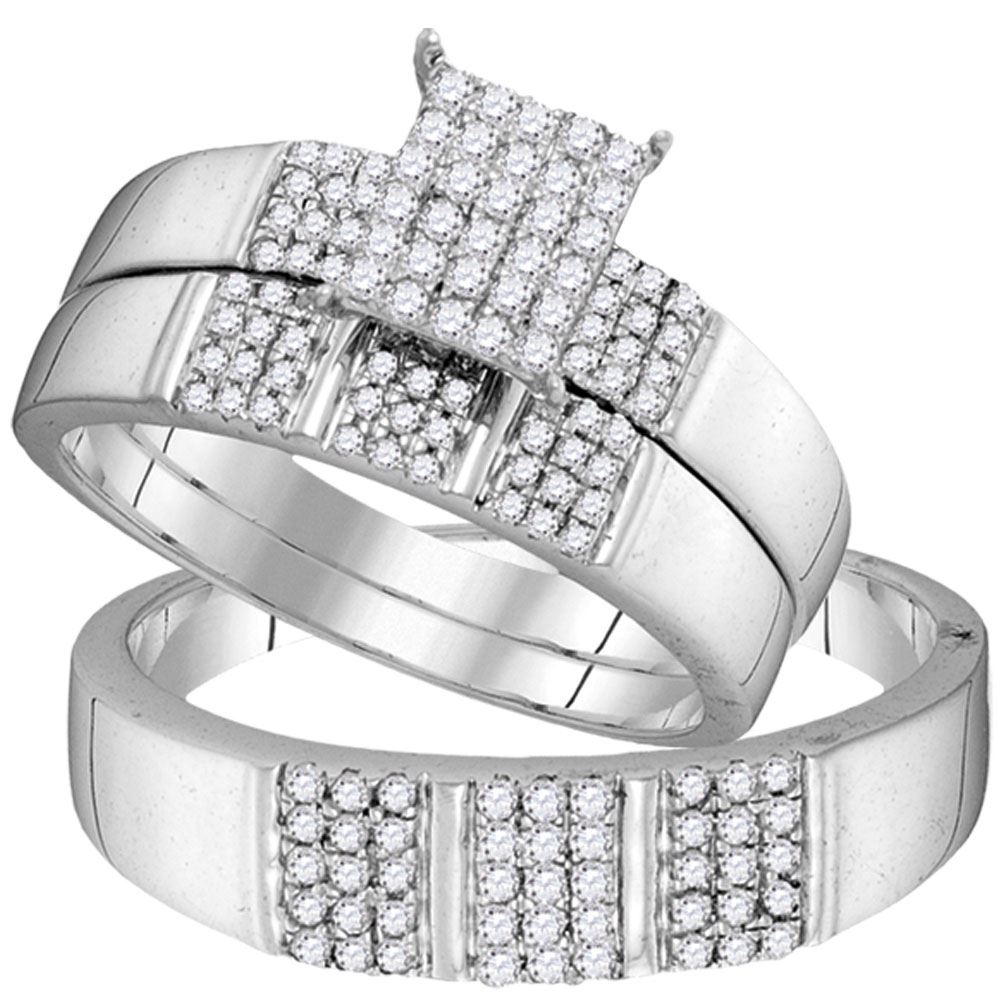REF-47K3R - SKU: GD104109 ---- His & Hers Diamond Square Cluster Matching Bridal Wedding Ring Band Set 1/2 Cttw 10kt White Gold