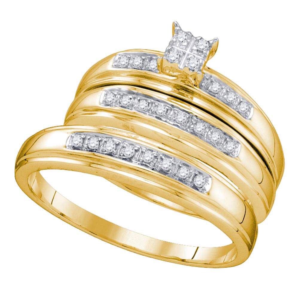 REF-30W9H - SKU: GD48379 ---- His & Hers Diamond Square Cluster Matching Bridal Wedding Ring Band Set 1/5 Cttw 10kt Yellow Gold