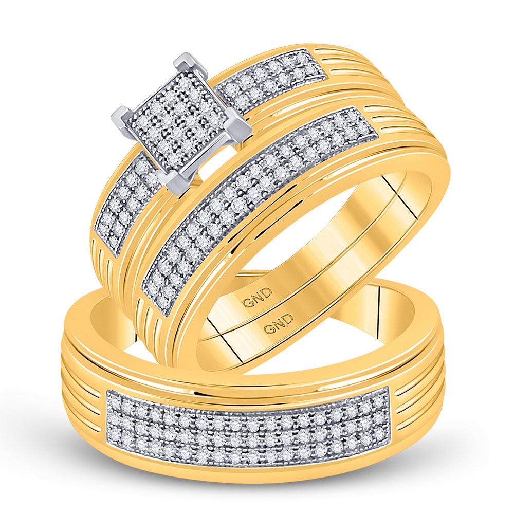 REF-64W5H - SKU: GD56080 ---- His & Hers Diamond Square Cluster Matching Bridal Wedding Ring Band Set 3/8 Cttw 10kt Yellow Gold