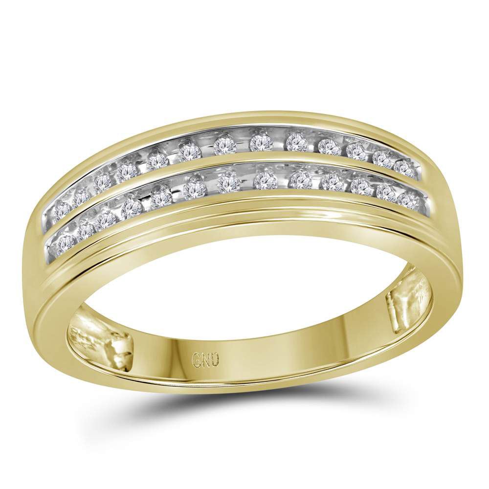 10kt Yellow Gold His Hers Round Diamond Square Matching Wedding Set 1/2 Cttw