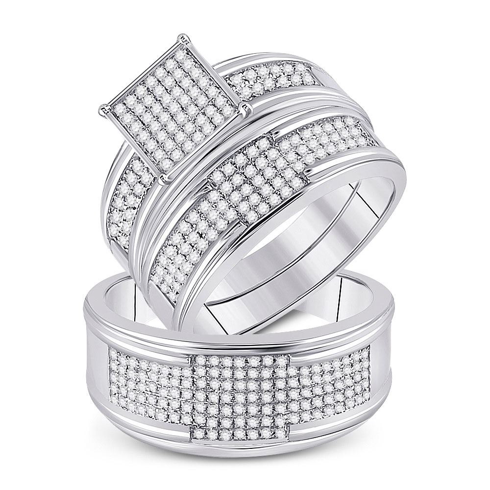 10kt White Gold His Hers Round Diamond Square Matching Wedding Set 5/8 Cttw