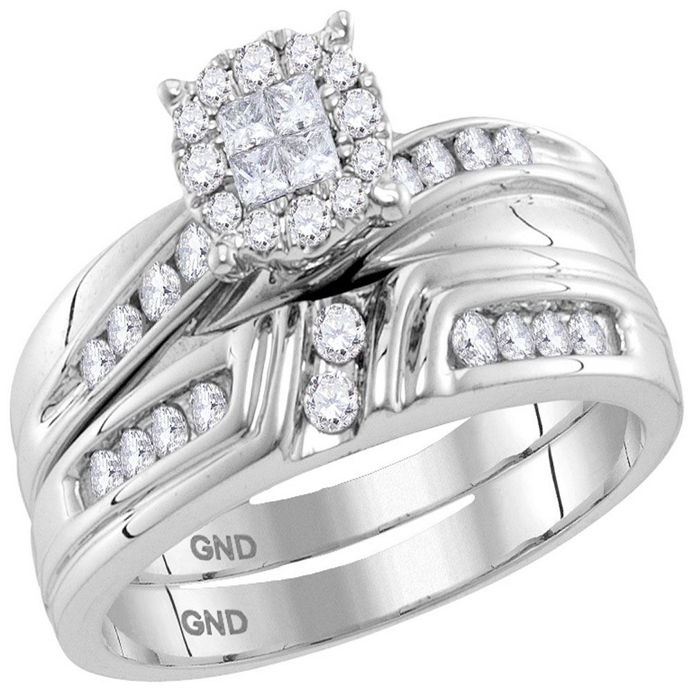 14kt White Gold His Hers Princess Diamond Cluster Matching Wedding Set 5/8 Cttw