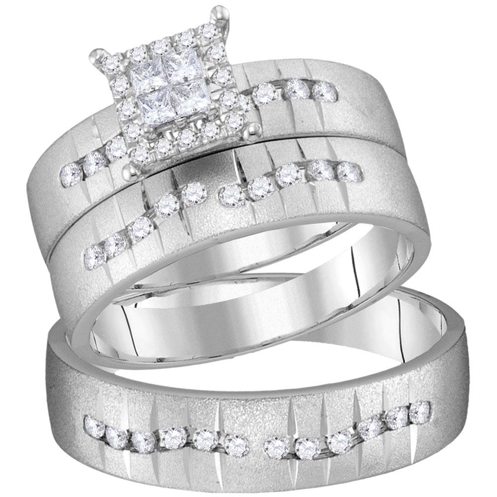14kt White Gold His Hers Princess Diamond Square Matching Wedding Set 1/2 Cttw