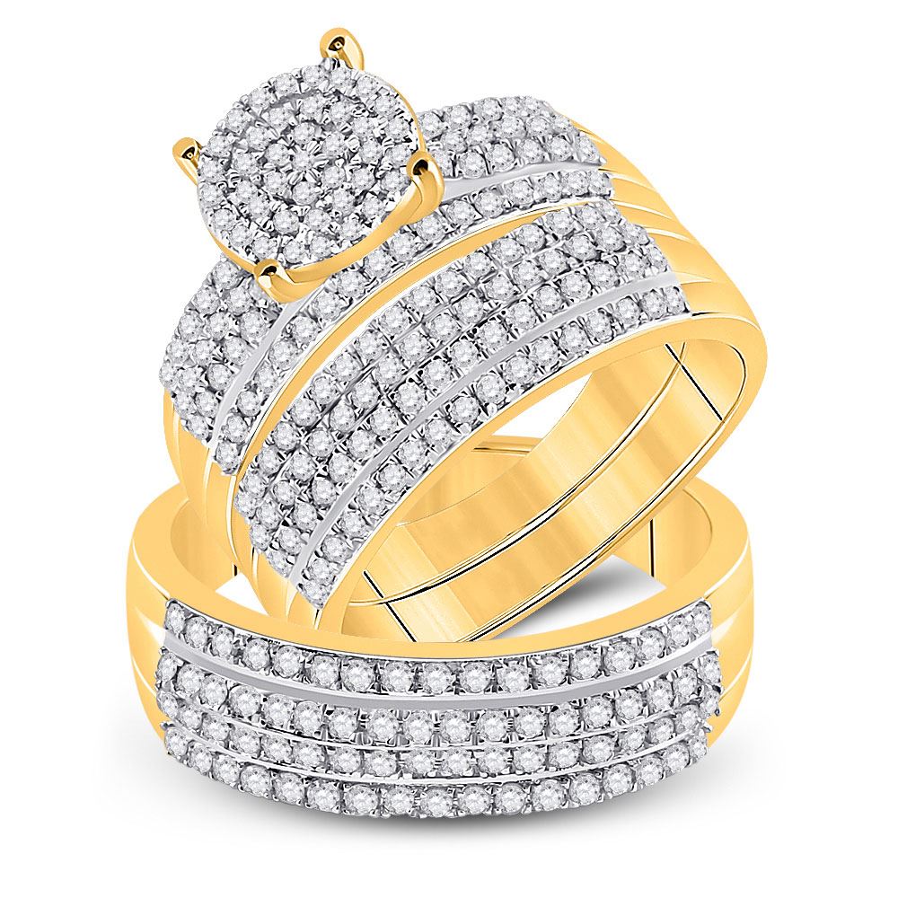 14kt Yellow Gold His Hers Round Diamond Cluster Matching Wedding Set 1-1/3 CttwItem Number: GND-153558Gemstone Details<span