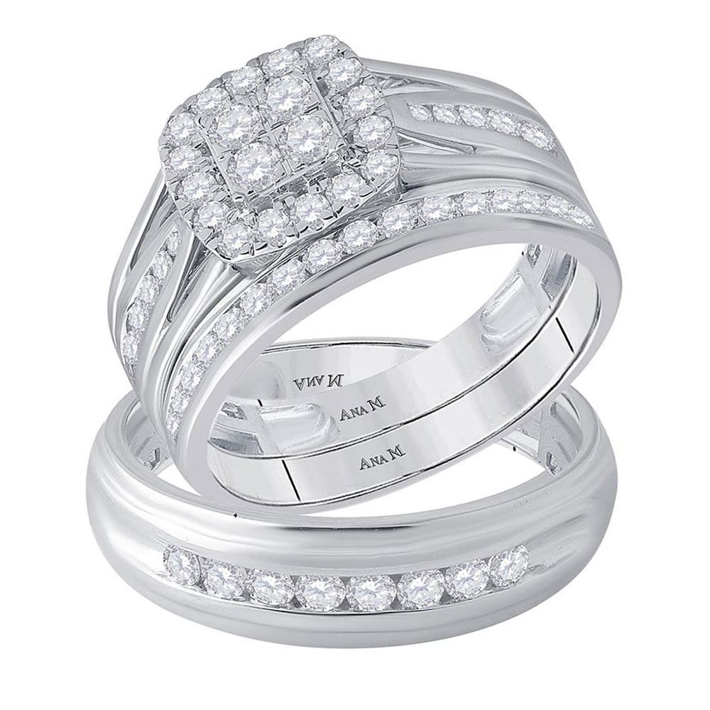 14kt White Gold His Hers Round Diamond Cluster Matching Wedding Set 1-1/4 CttwItem Number: GND-155696Gemstone Details<span