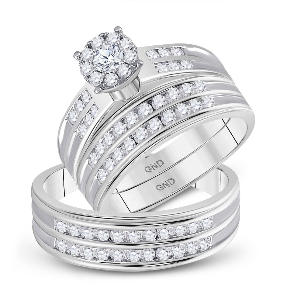 10kt White Gold His Hers Round Diamond Cluster Matching Wedding Set 1-1/5 CttwItem Number: GND500092Gemstone Details1 & 1/5 Carats total weight --- 1/8 carat center solitaire
