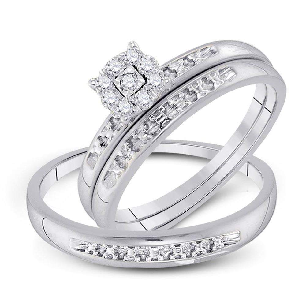 10kt White Gold His Hers Round Diamond Cluster Matching Wedding Set 1/10 CttwItem Number: GND106229Gemstone Details1/10 Carats total weight --- .01 carat center solitaire