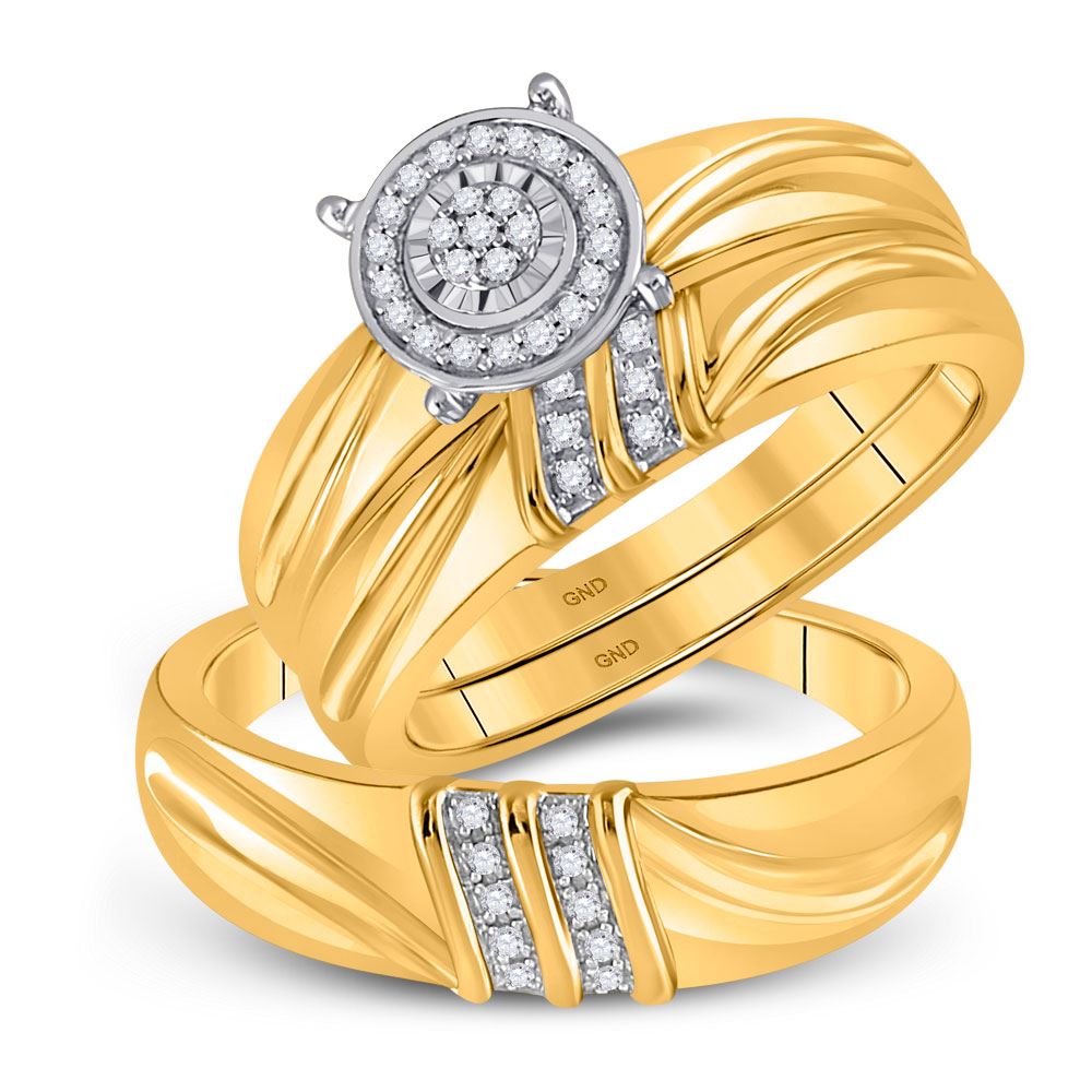 REF-30F5W ---- His Hers Round Diamond Cluster Matching Wedding Set 1/10 Cttw 10kt Yellow Gold