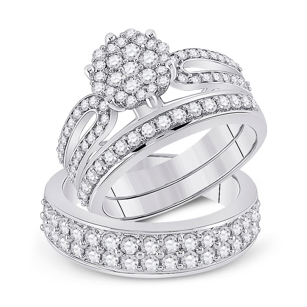 14kt White Gold His Hers Round Diamond Cluster Matching Wedding Set 1-3/4 CttwItem Number: GND1013118Gemstone Details1 & 3/4 Carats total weight