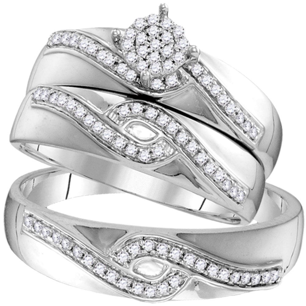 10kt White Gold His Hers Round Diamond Cluster Matching Wedding Set 1/3 CttwItem Number: GND-108570Gemstone Details<span