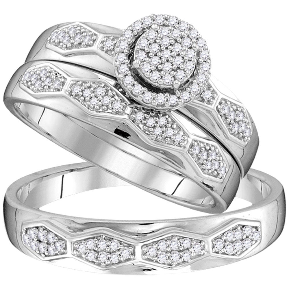 10kt White Gold His Hers Round Diamond Cluster Matching Wedding Set 1/3 CttwItem Number: GND-108201Gemstone Details<span