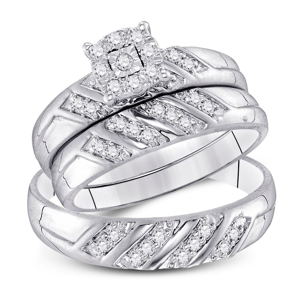 10kt White Gold His Hers Round Diamond Cluster Matching Wedding Set 1/3 CttwItem Number: GND-97998Gemstone Details1/3 Carats total weight --- .02 carat center solitaire
