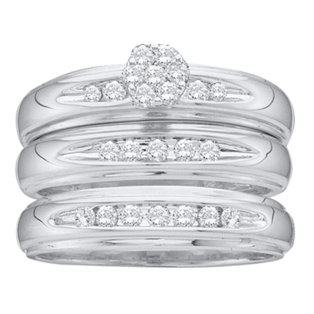 14kt White Gold His Hers Round Diamond Cluster Matching Wedding Set 1/3 CttwItem Number: GND101933Gemstone Details1/3 Carats total weight