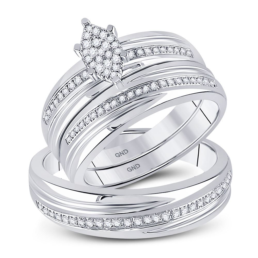 10kt White Gold His Hers Round Diamond Cluster Matching Wedding Set 1/4 CttwItem Number: GND-127917Gemstone Details<span