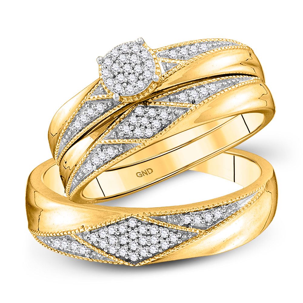REF-32W5K ---- His Hers Round Diamond Cluster Matching Wedding Set 1/4 Cttw 10kt Yellow Gold