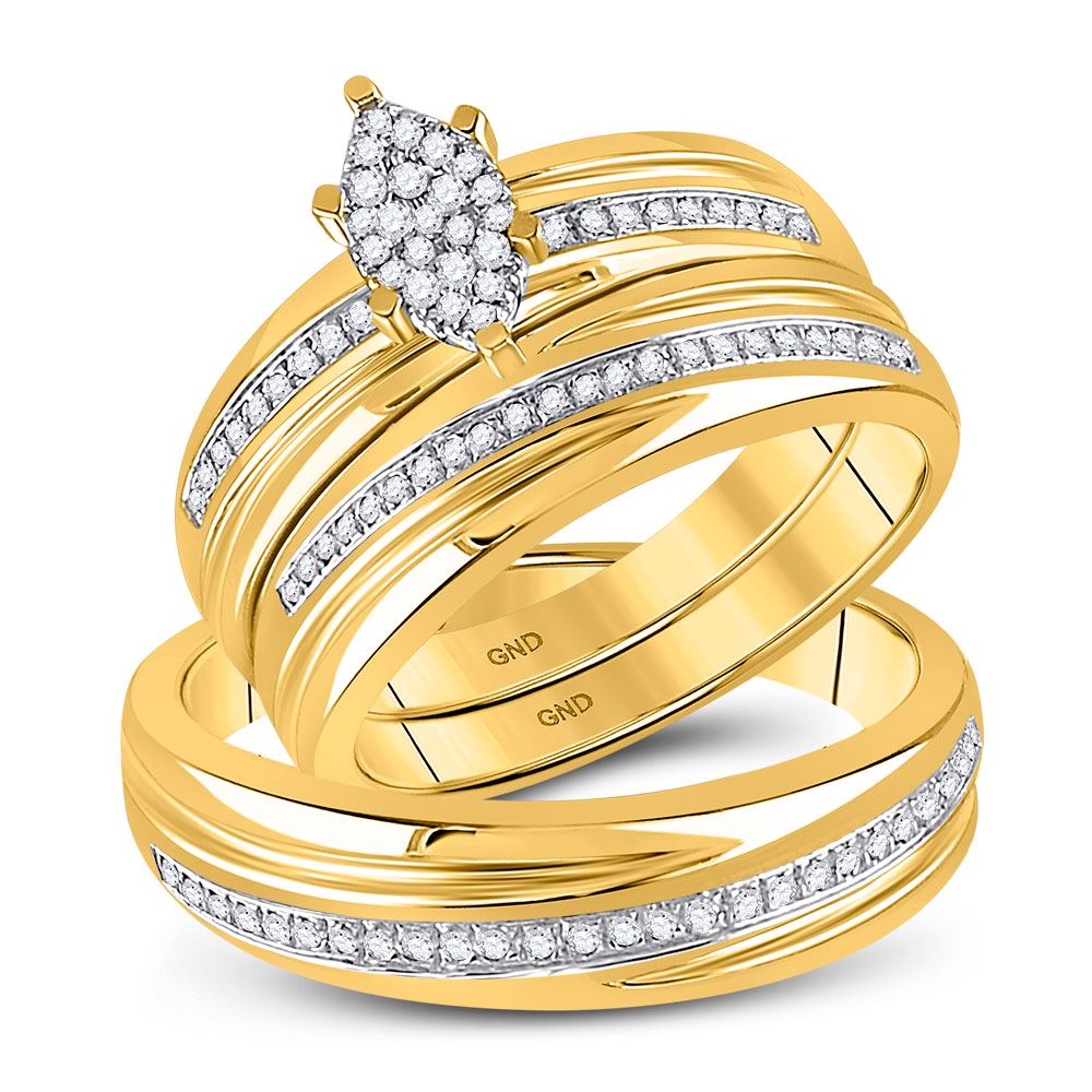 10kt Yellow Gold His Hers Round Diamond Cluster Matching Wedding Set 1/4 CttwItem Number: GND-127921Gemstone Details<span