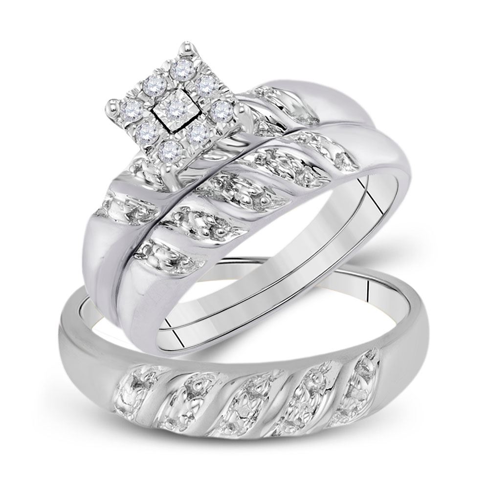 10kt White Gold His Hers Round Diamond Cluster Matching Wedding Set 1/8 CttwItem Number: GND151924Gemstone Details1/8 Carats total weight