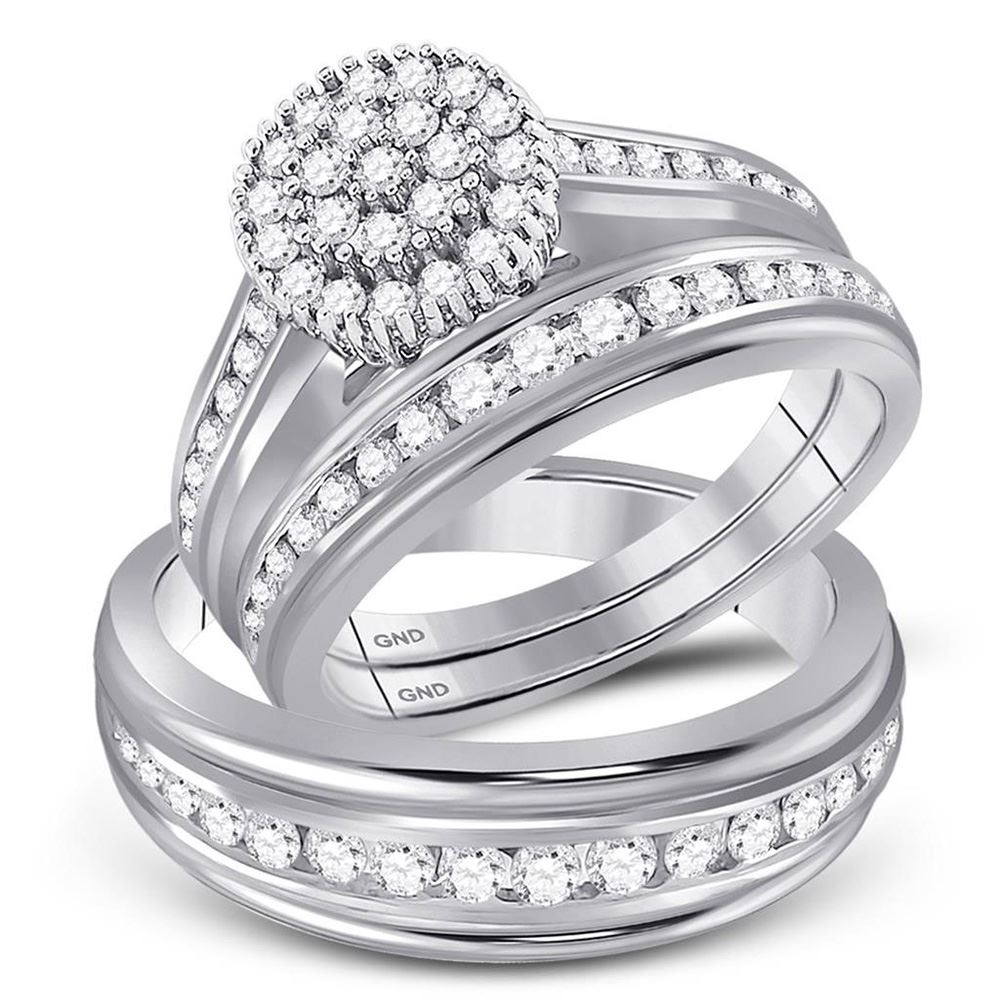 10kt White Gold His Hers Round Diamond Cluster Matching Wedding Set 1 CttwItem Number: GND977031Gemstone Details1 Carats total weight