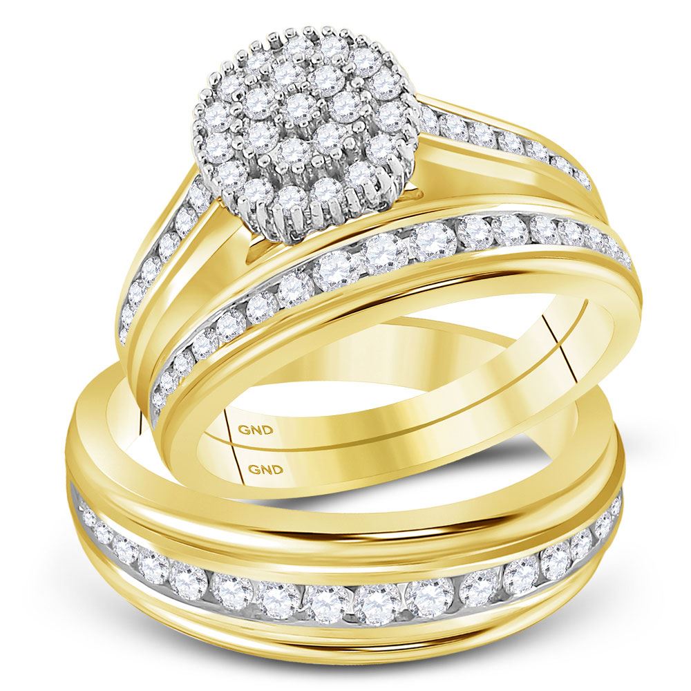 10kt Yellow Gold His Hers Round Diamond Cluster Matching Wedding Set 1 CttwItem Number: GND577954Gemstone Details1 Carats total weight