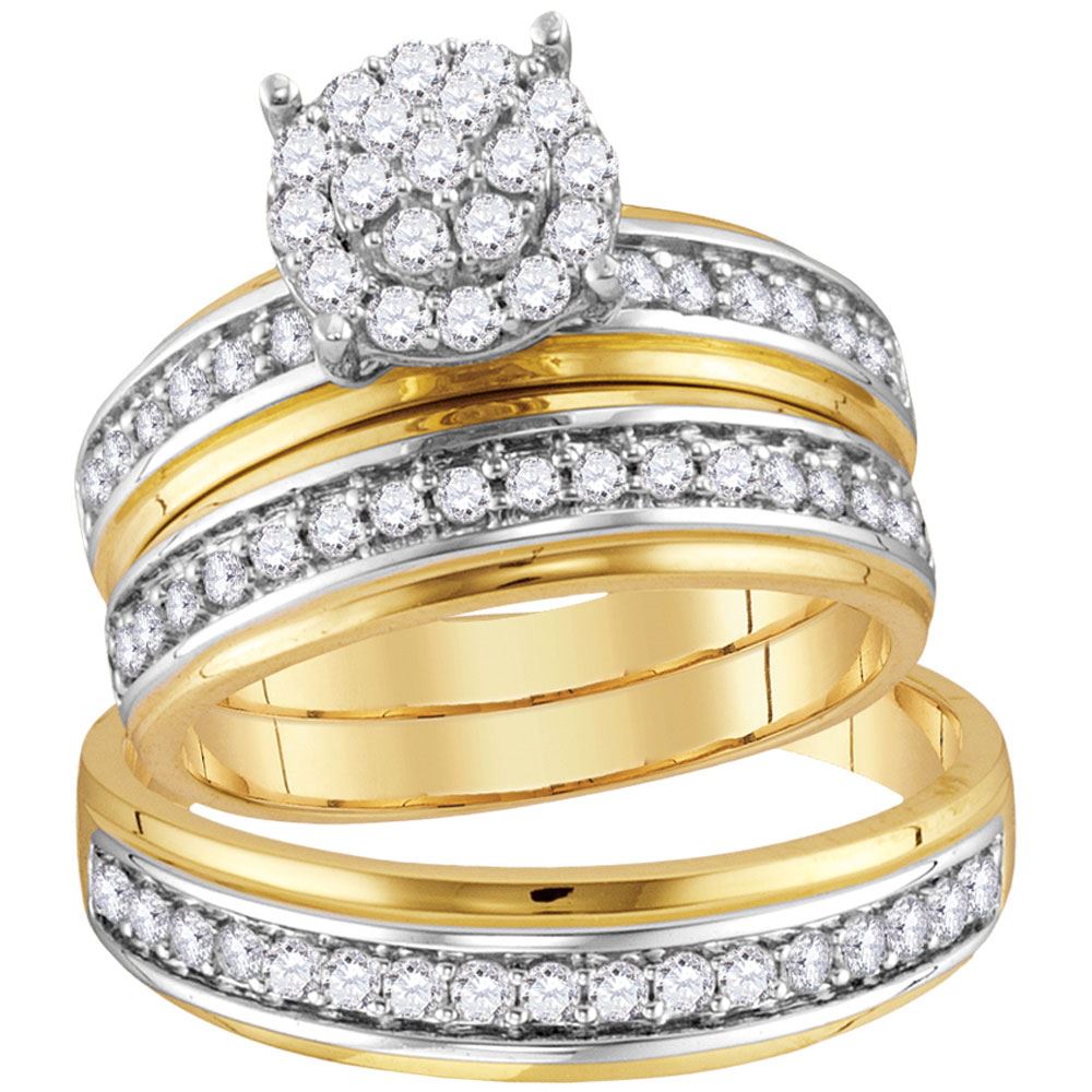 10kt Yellow Gold His Hers Round Diamond Cluster Matching Wedding Set 1 CttwItem Number: GND114088Gemstone Details1 Carats total weight