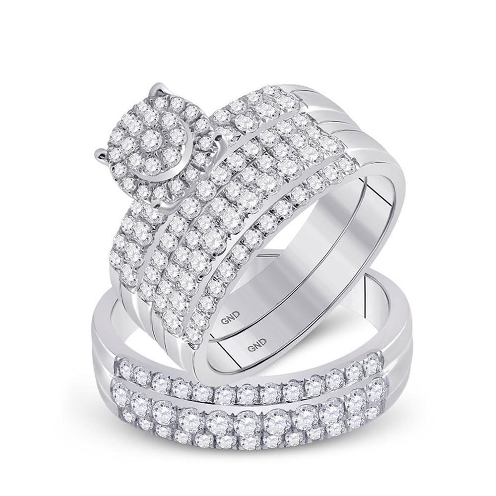 14kt White Gold His Hers Round Diamond Cluster Matching Wedding Set 2 CttwItem Number: GND812518Gemstone Details2 Carats total weight