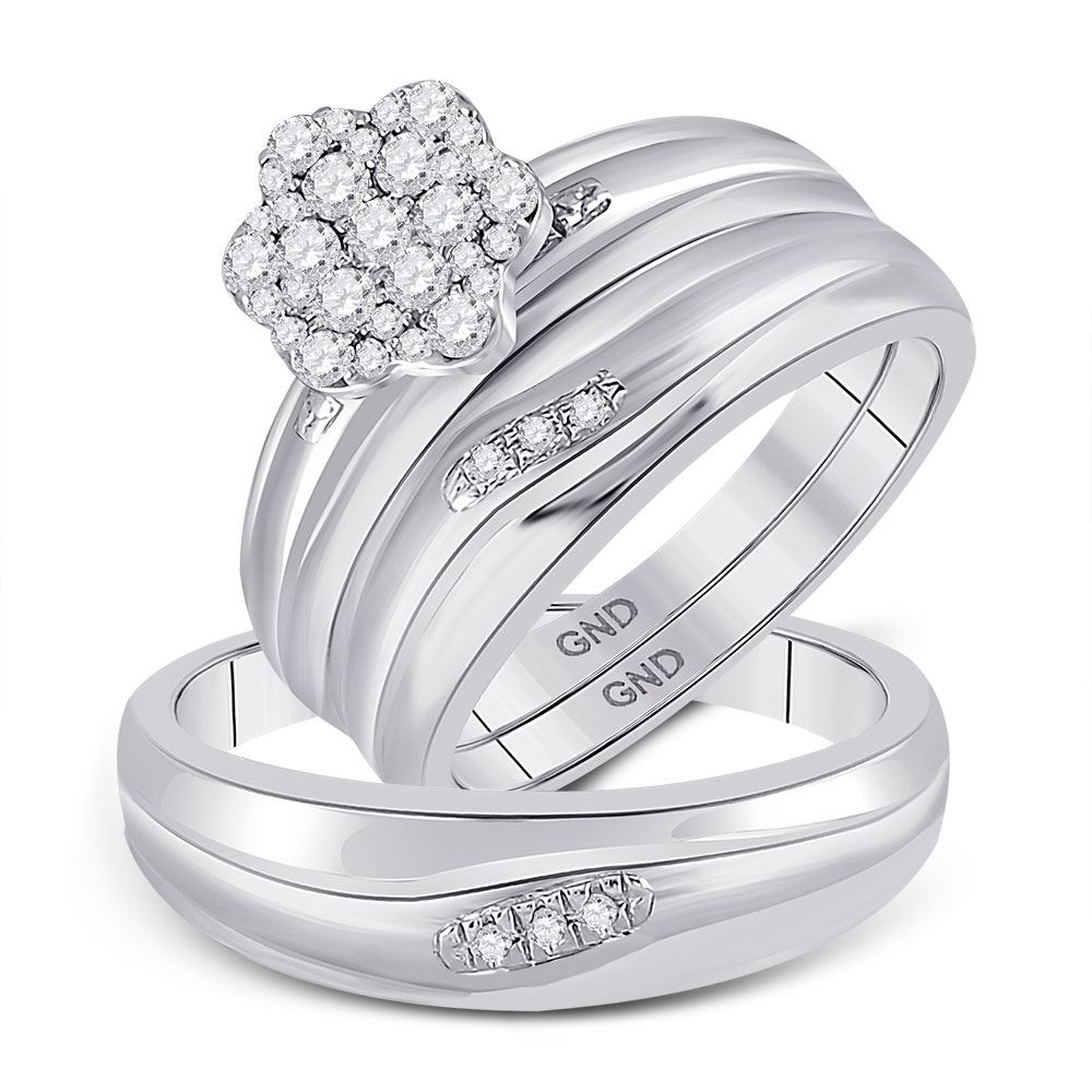 10kt White Gold His Hers Round Diamond Cluster Matching Wedding Set 3/8 CttwItem Number: GND-110053Gemstone Details<span