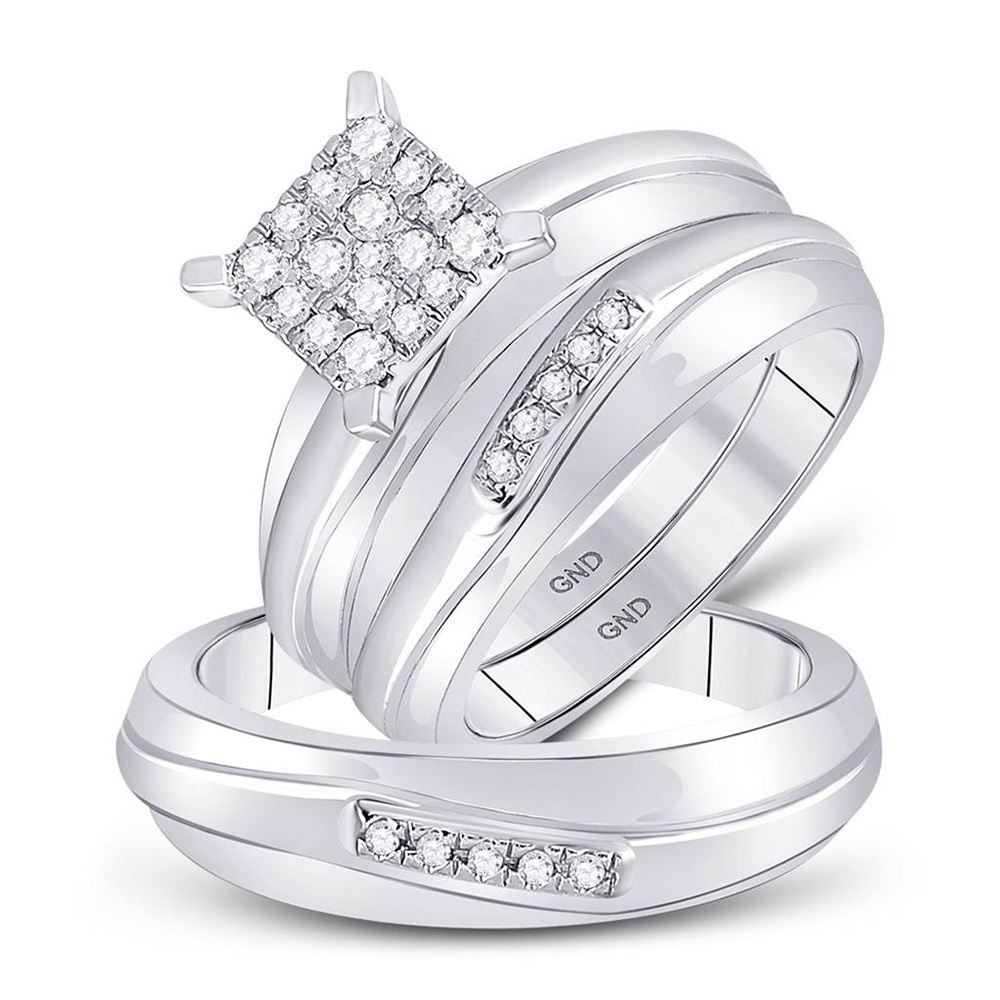 10kt White Gold His Hers Round Diamond Cluster Matching Wedding Set 3/8 CttwItem Number: GND925103Gemstone Details3/8 Carats total weight