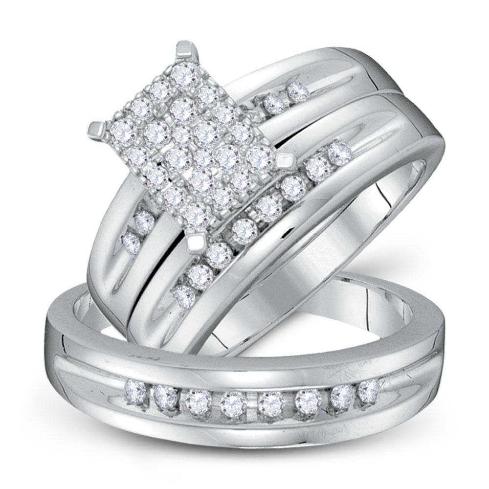 10kt White Gold His Hers Round Diamond Cluster Matching Wedding Set 5/8 CttwItem Number: GND-109852Gemstone Details<span