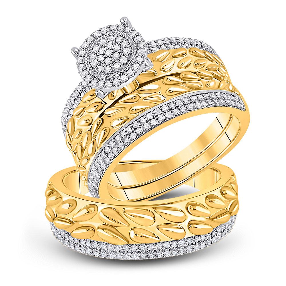 10kt Yellow Gold His Hers Round Diamond Cluster Matching Wedding Set 5/8 CttwItem Number: GND-150611Gemstone Details<span