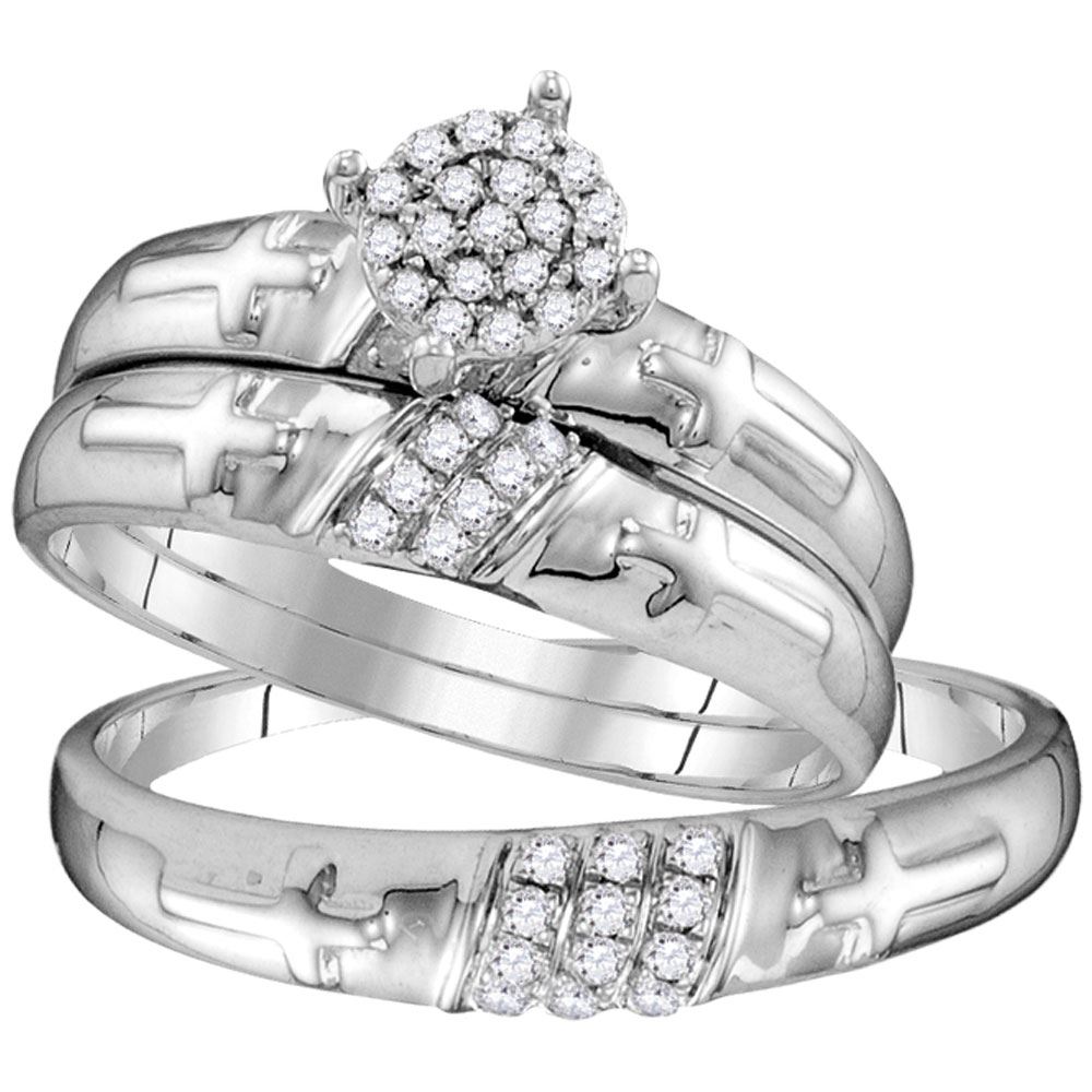 10kt White Gold His Hers Round Diamond Cross Matching Wedding Set 1/4 CttwItem Number: GND-108591Gemstone Details<span