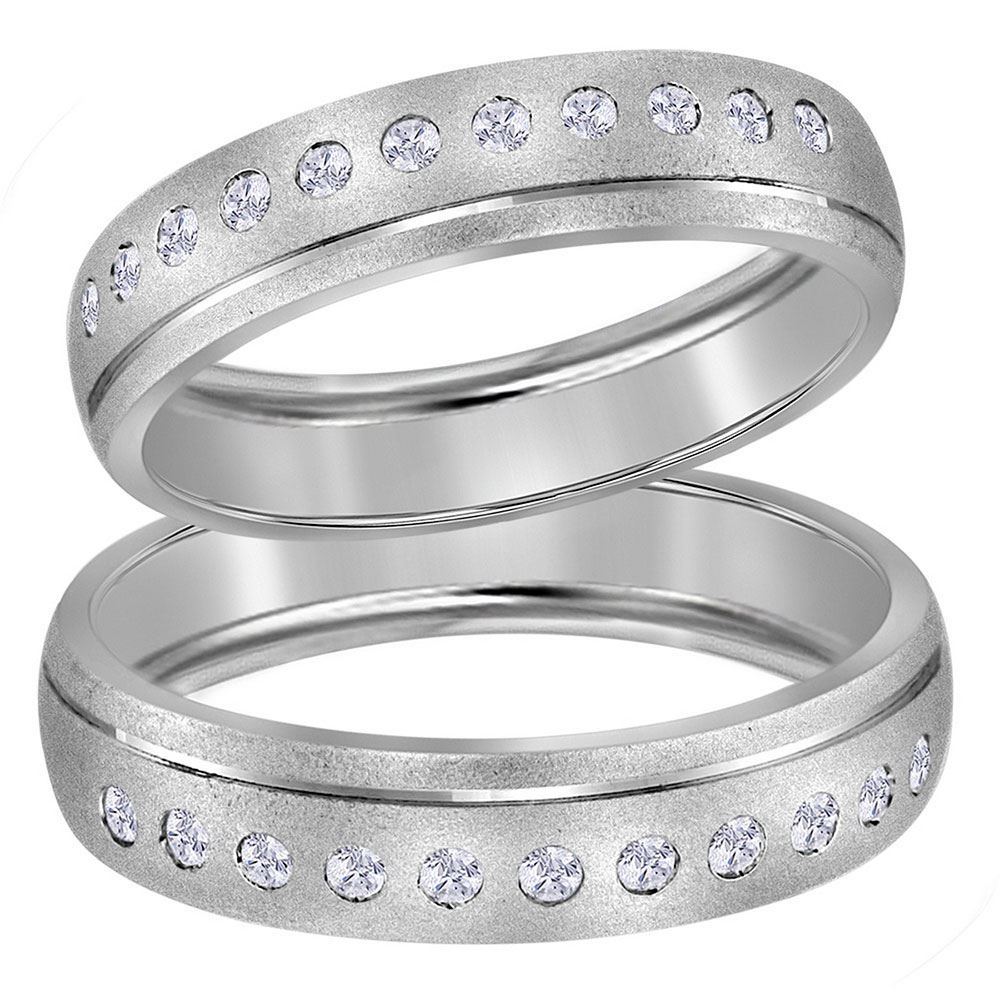REF-43K5Y ---- His Hers Round Diamond Matching Wedding Band Set 1/4 Cttw 14kt White Gold