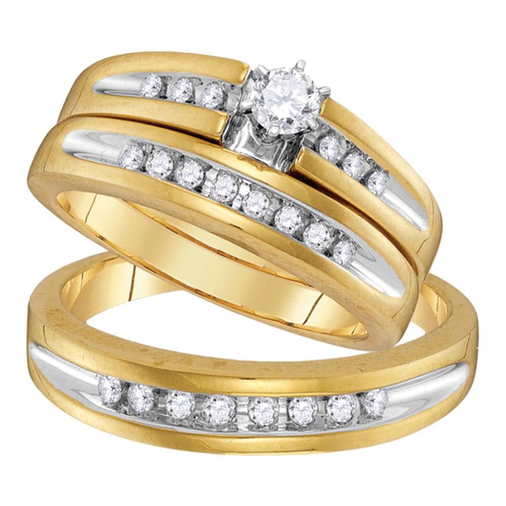 REF-57Y5N ---- His Hers Round Diamond Solitaire Matching Wedding Set 1/2 Cttw 10kt Yellow Gold
