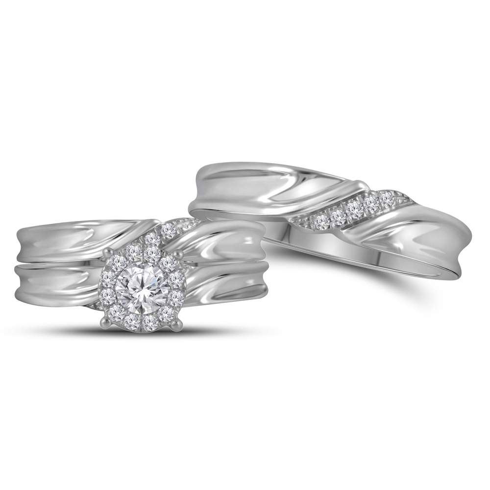 REF-79Y5N ---- His Hers Round Diamond Solitaire Matching Wedding Set 1/2 Cttw 14kt White Gold
