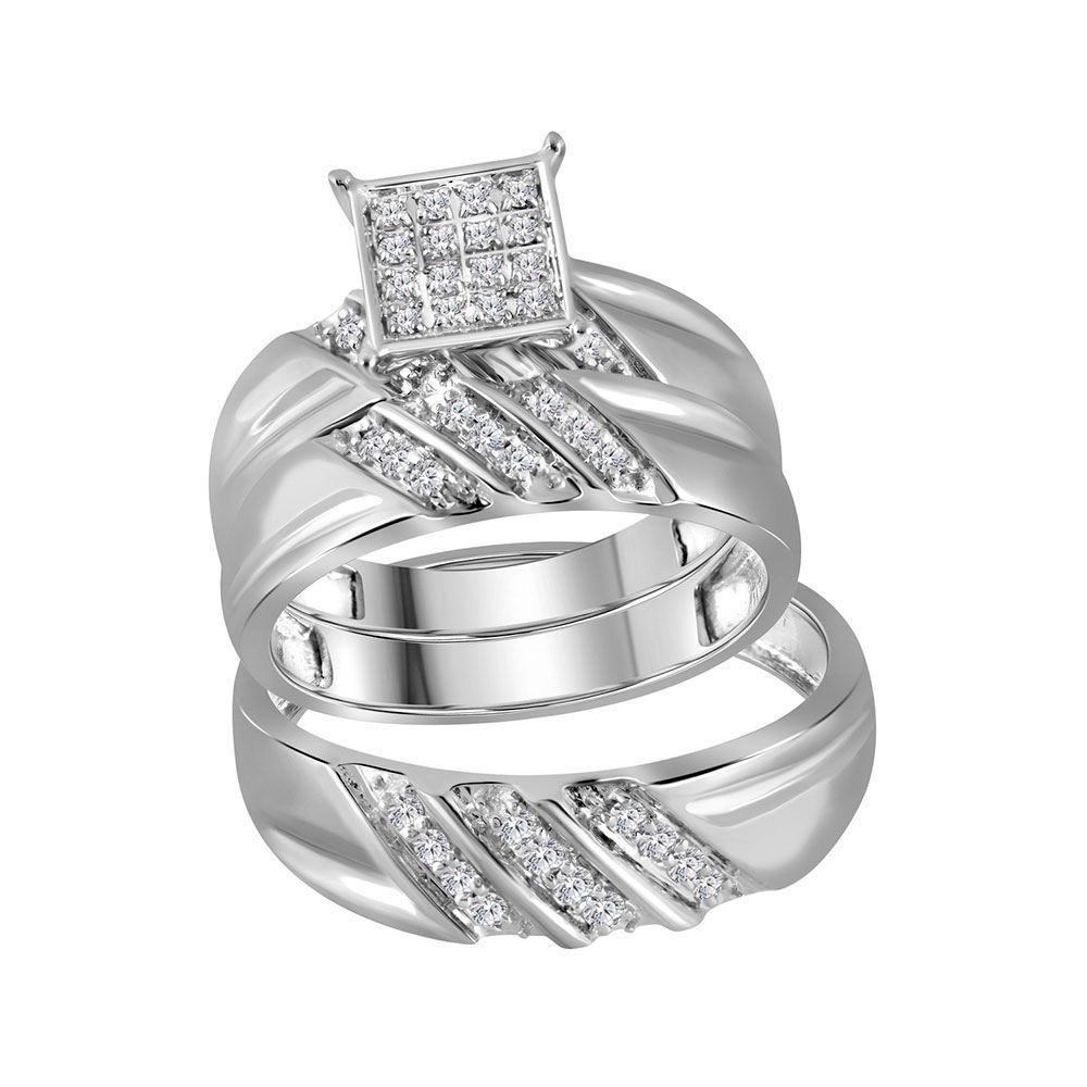 10kt White Gold His Hers Round Diamond Square Matching Wedding Set 1/3 CttwItem Number: GND-55154Gemstone Details1/3 Carats total weight