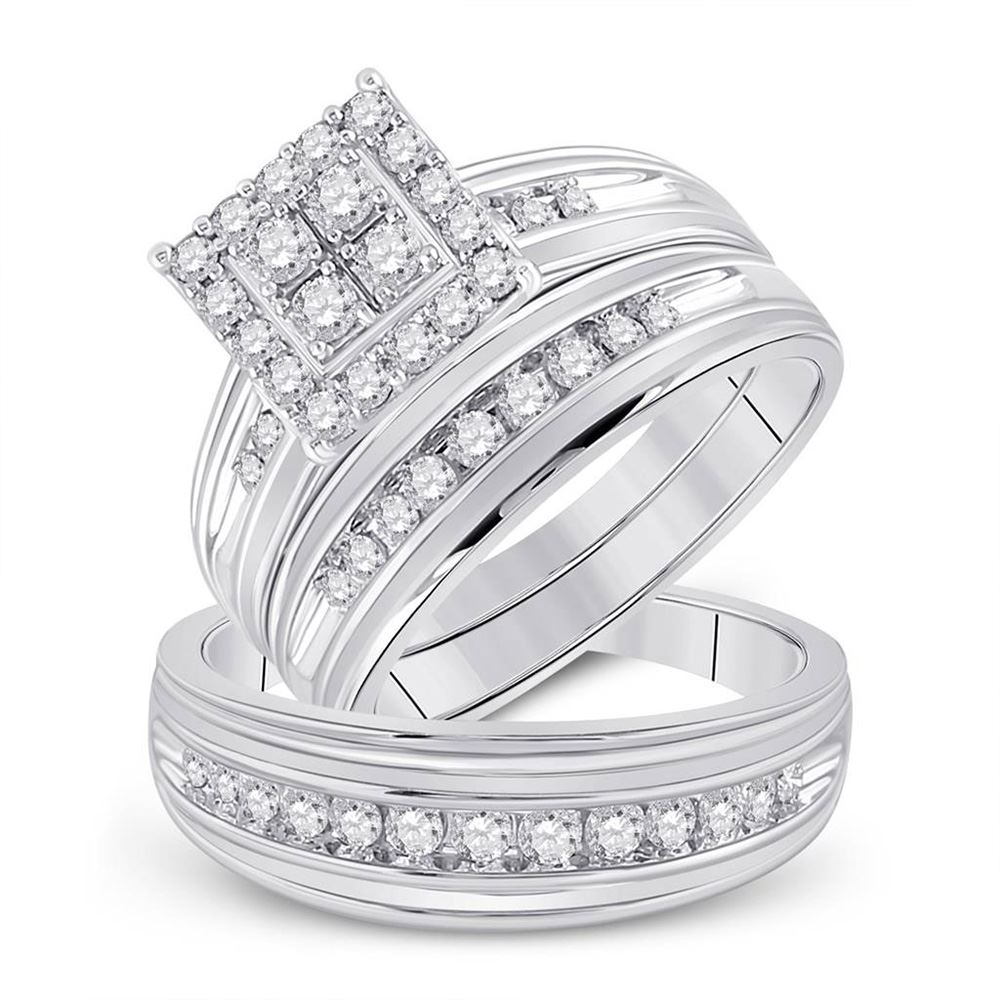 14kt White Gold His Hers Round Diamond Square Matching Wedding Set 1 CttwItem Number: GND984975Gemstone Details1 Carats total weight