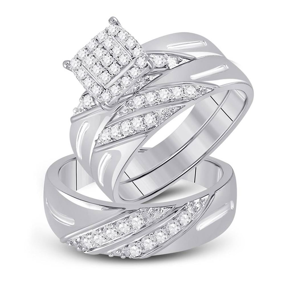 10kt White Gold His Hers Round Diamond Square Matching Wedding Set 5/8 CttwItem Number: GND102259Gemstone Details5/8 Carats total weight