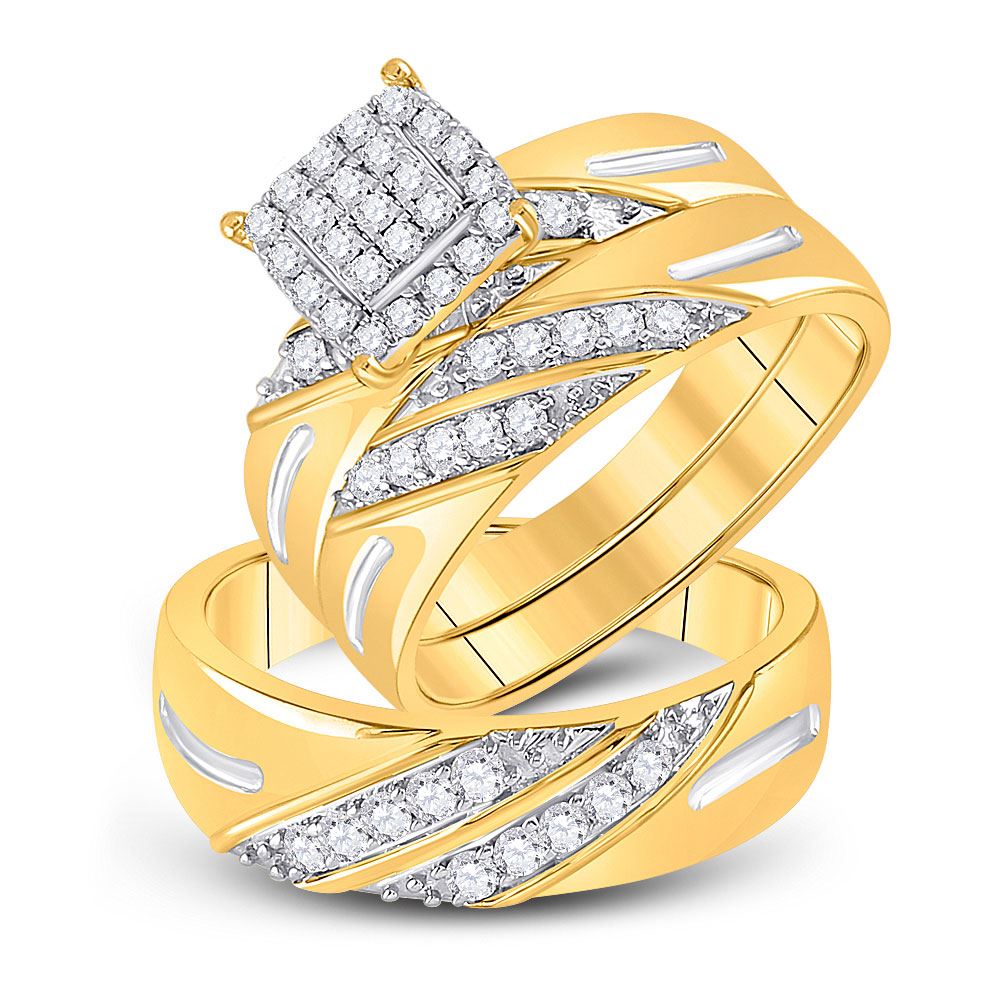 10kt Yellow Gold His Hers Round Diamond Square Matching Wedding Set 5/8 CttwItem Number: GND1495406Gemstone Details5/8 Carats total weight
