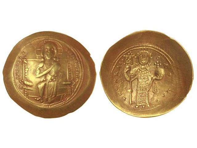 Histamenon. CONSTANTINO X (1059-1067). Anv.: Cristo entronizado, alrededor leyenda. Rev.: Constantino en pie con lábaro y globo. 4,40 grs. AU. Se-1847. MBC+/EBC.