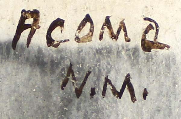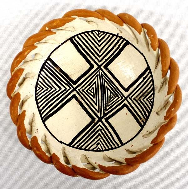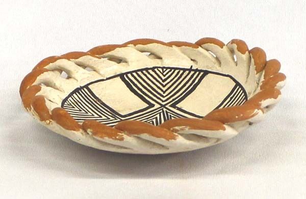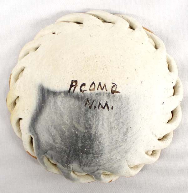 Historic Native American Acoma Pottery Shallow Bowl, measures .75'' x 4.5'', stained on the bottom due to ink bleeding, beautiful rim