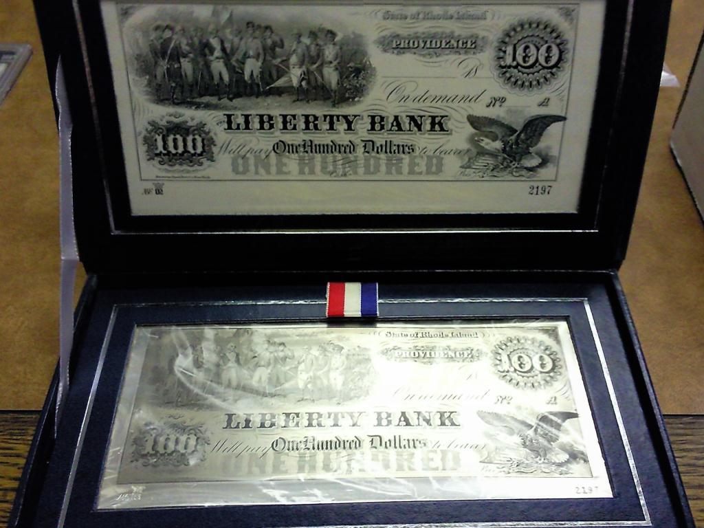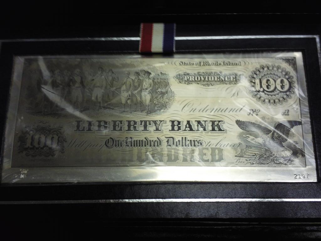 In This Replica Liberty Bank Note, In Nice Case With A Replica Of The $100 Liberty Bank Note, Sterling Silver