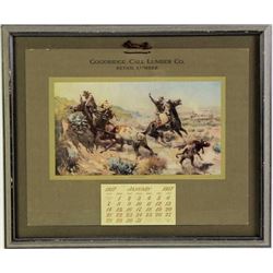 Large Charles Russell artworkSD. advertising calendar for Goodridge - Call Lumber Co. 1917, "A Serious Predicament" . Goodridge Call ow...