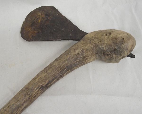 Historic Hand Forged Axe. This piece has a wooden Handle and a hand forged axe head. Handle measures approx. 26'' Long and while the axe head is approx. 9'' Long.