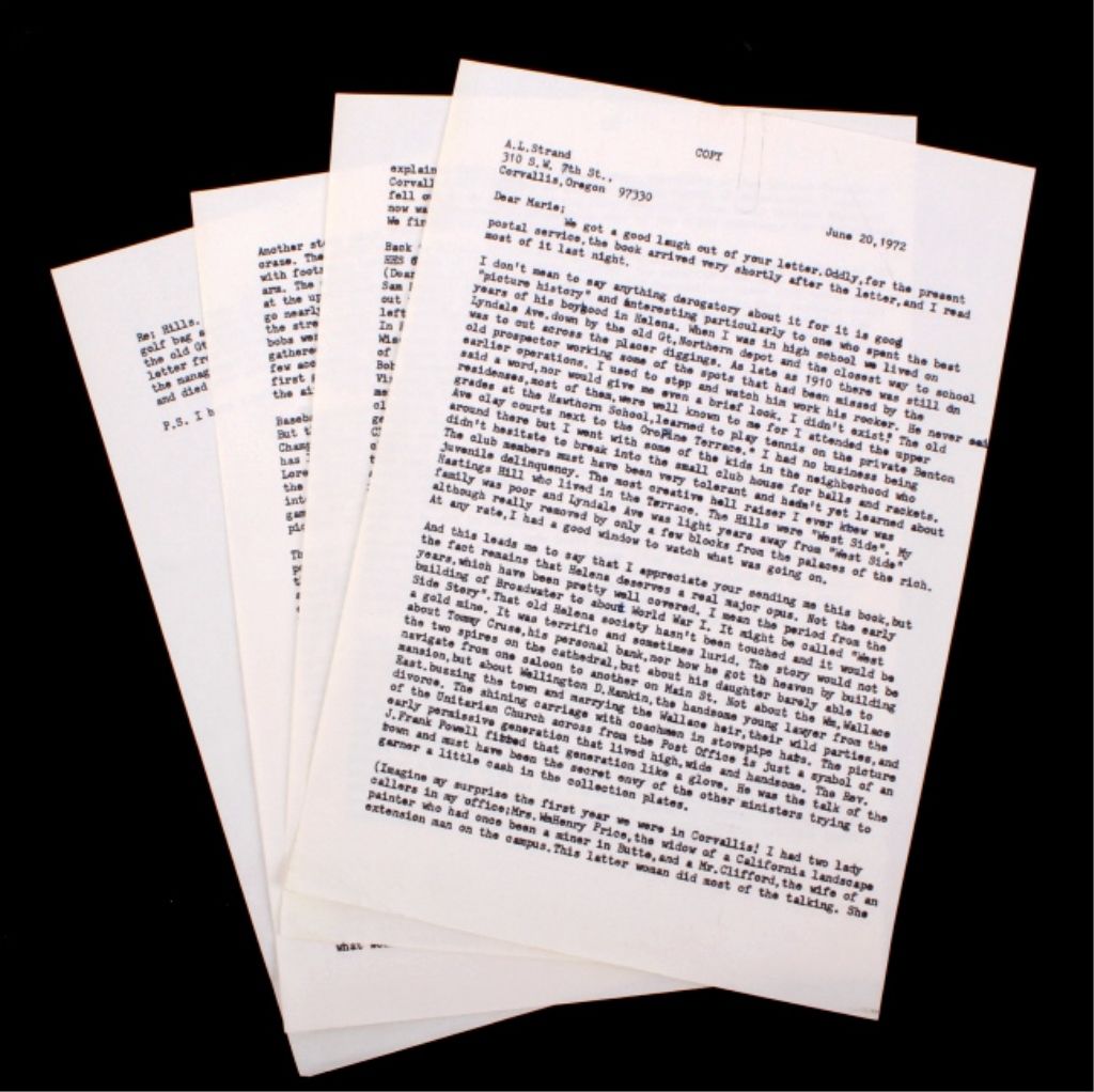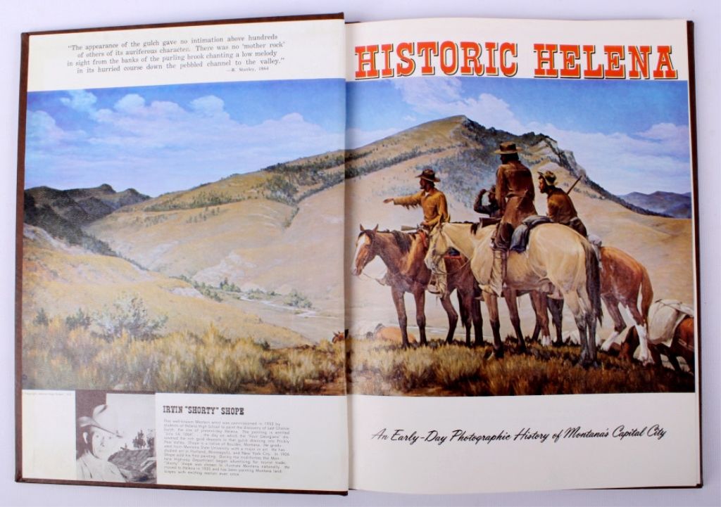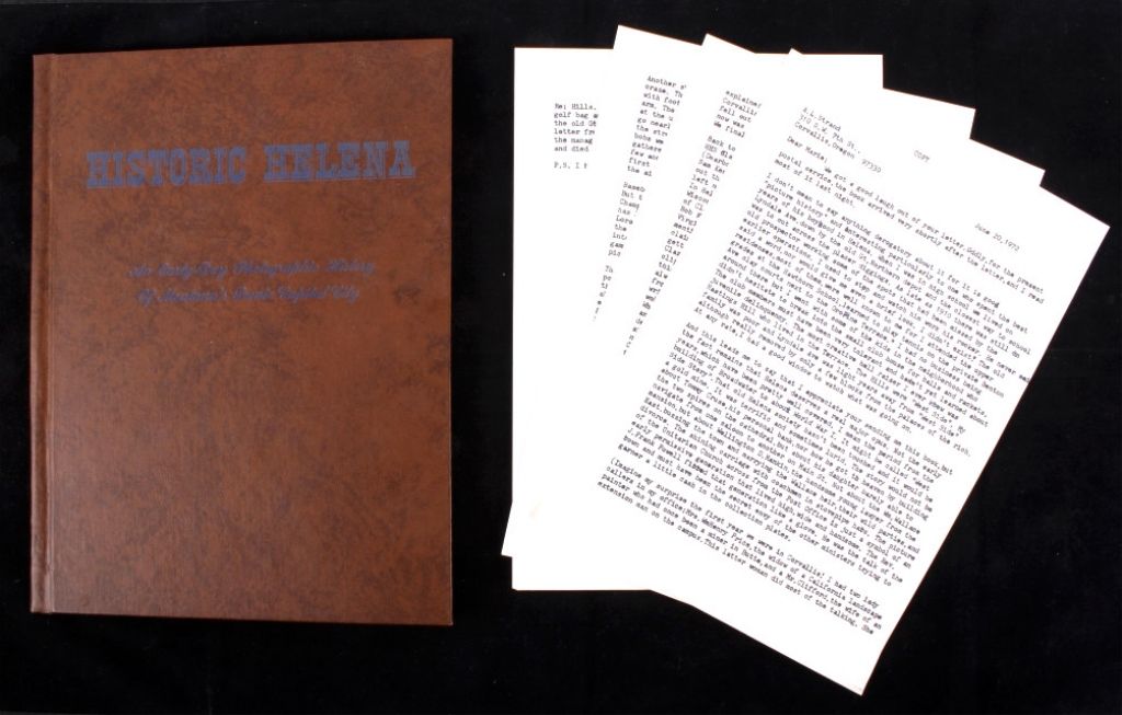 This lot features a book titled "Historic Helena". This book was created by John Schroeder and James Graff for Home Building and Loan Association, Helena, Montana. The book was first published in 1964, this is the1970 publication. Along with this book is a copy of a letter written by a gentleman who grew up in Helena in the 1890's. The book is in excellent condition. It measures 8.5" x 11.25".