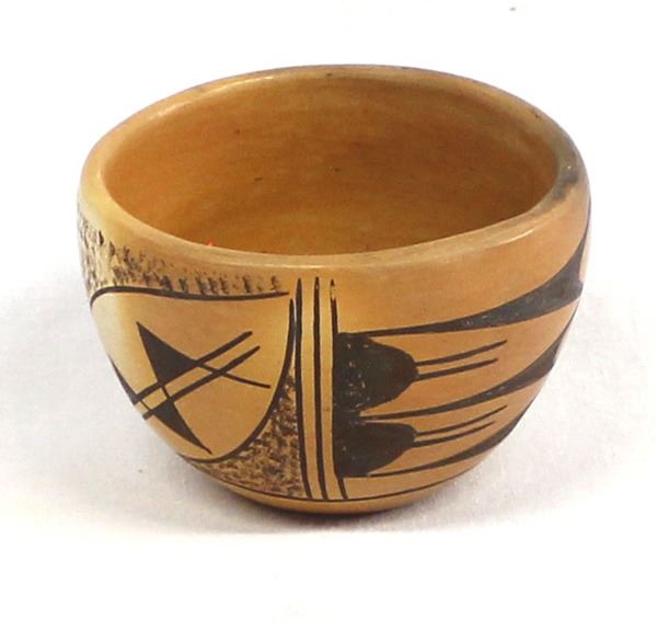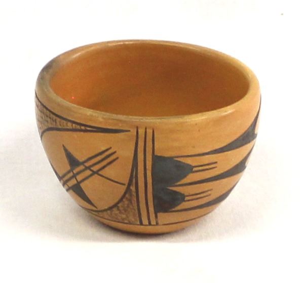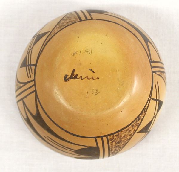 Historic Native American Hopi Pottery Bowl by Clarice Sahmie, measures 2'' x 3'' and is signed Clarice on the bottom