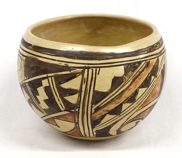 Historic Native American Hopi Pottery Bowl by Frieda Poleahla (1918-1994) Fire/Coyote Clan, Polacca AZ, measures 4.5'' x 6'' and is signed on the bottom