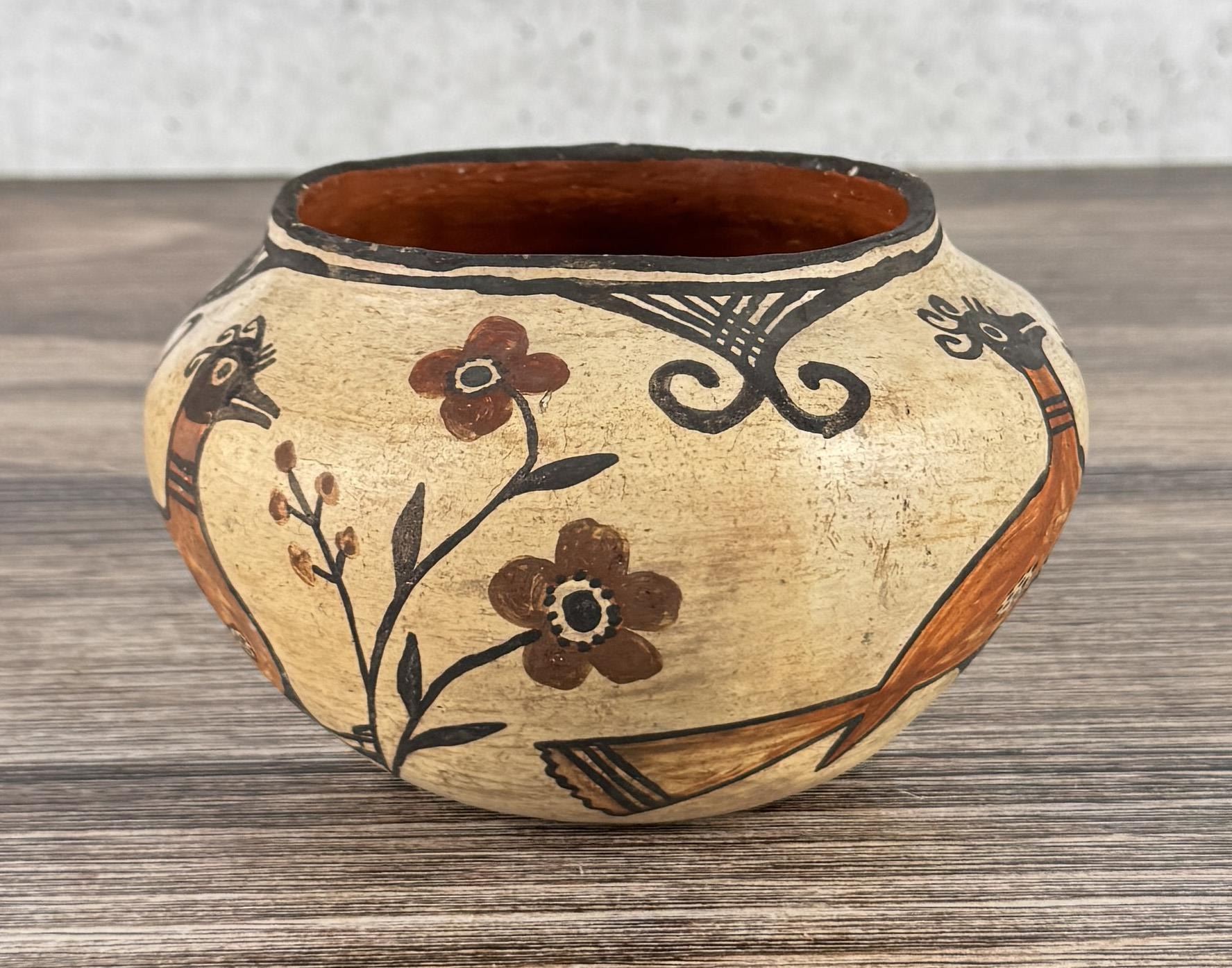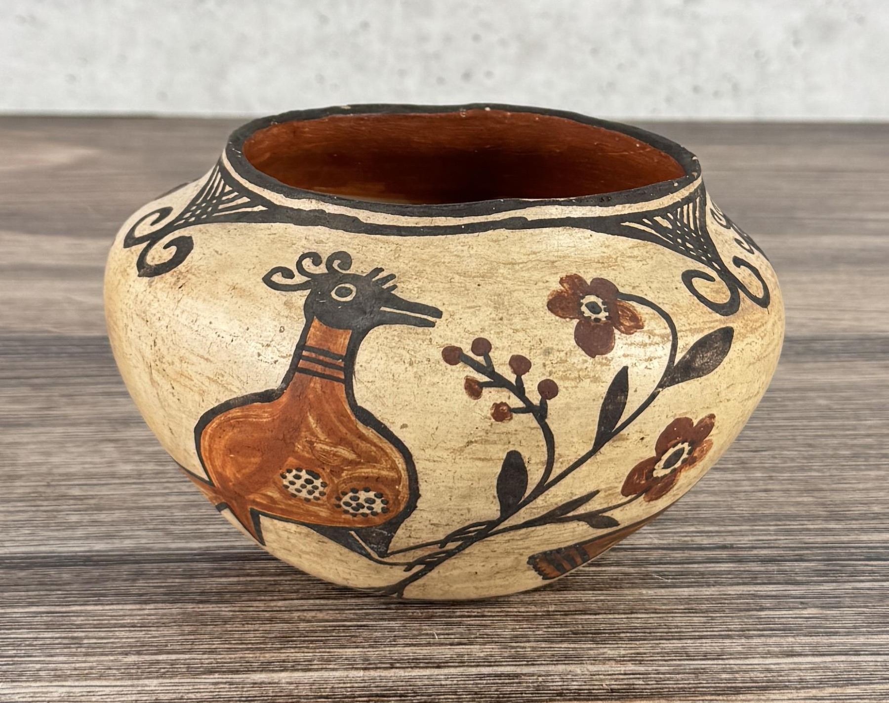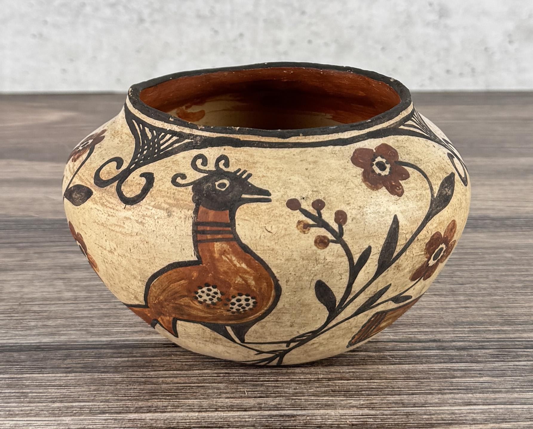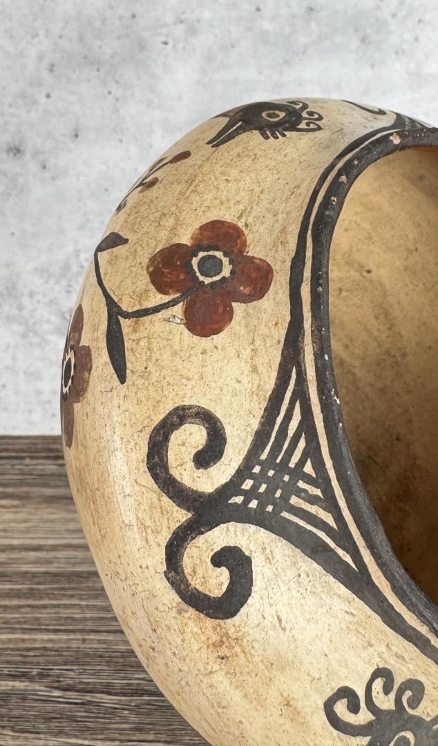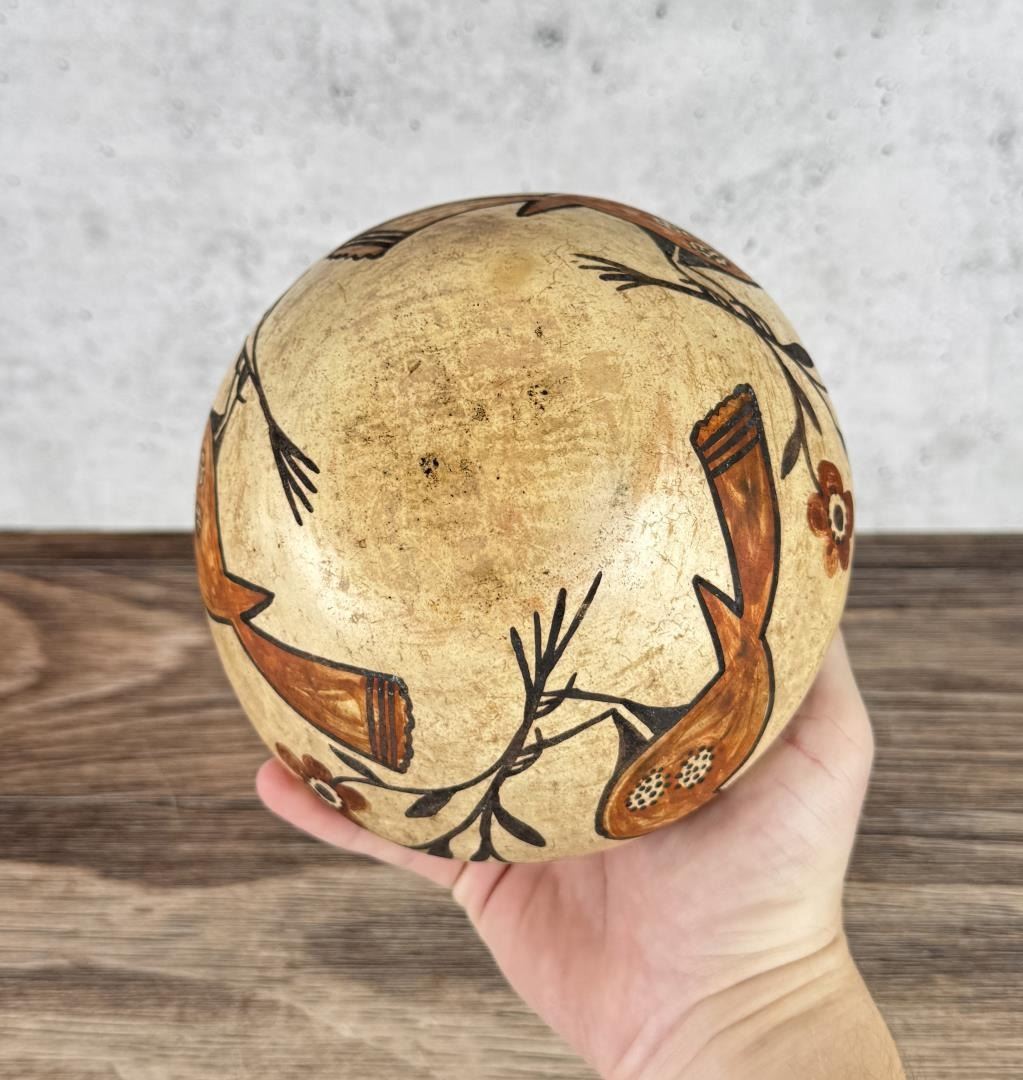 3 5/8" tall by 6" in diameter. Small hairline crack as shown.